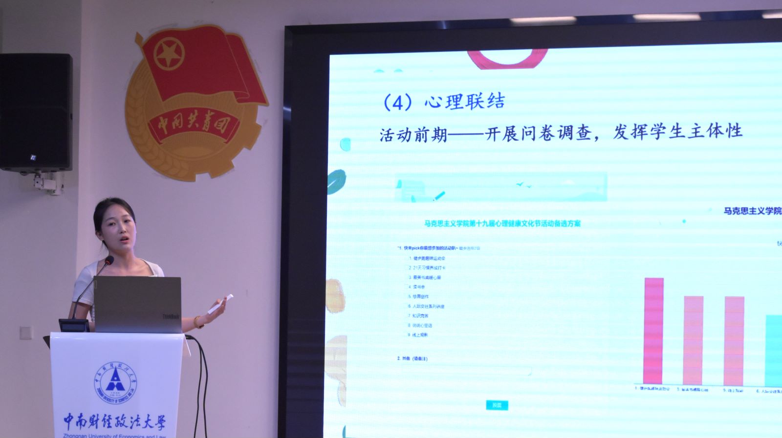 课上,学校第五届“十佳心理委员”、2021级研究生心理委员李圣楠为2023级研究生心理委员作了朋辈经验交流。她分享了自己通过参与培训、阅读书籍等方式,增加专业知识储备,并在此基础上,宣传推广心理健康知识,邀请名师开展专题讲座,组织开展含健心跑、安心居、悦心读、用心观、热心助等在内的“新时代•‘心’力量”系列心理健康活动的工作经历,为各位心理委员今后组织班级心理活动、开展朋辈心理互助提供了参考借鉴。