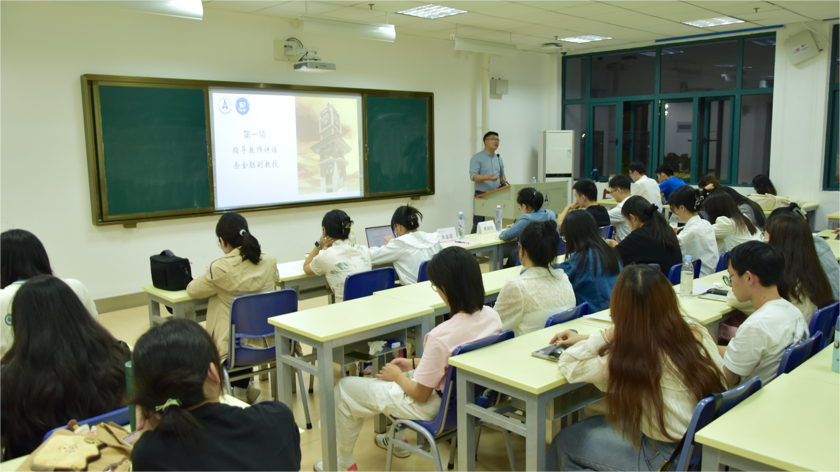 余金聪老师作为研心协指导教师发言。余老师回顾了研心协自成立以来的组织建设和活动开展情况,对新成员的加入表示欢迎,对研心协成员饱满的工作热情和认真的工作态度给予肯定。余老师表示,新成员的加入为研心协注入了新鲜血液,希望大家珍惜学习锻炼平台,用心全情投入,不断增加心理知识储备,锻炼组织策划能力,提升团队协作和沟通协调能力,以积极健康情绪和人际互动联结实现心理自助和朋辈互助,有效预防心理危机情况的发生。余老师以“‘研’途有幸”研究生幸福打卡活动为例,从寻找心理学理论支持、组织策划实施、加强人文关怀、以学术研究思维提升流程设计的科学严谨性等方面,为研心协组织开展心理健康活动提供了宝贵建议和具体指导。余老师还鼓励研心协成员在现有品牌活动框架基础上,不断丰富和凝练亮点特色,齐心协力争取平台资源、加强宣传推广,助力研究生提升心理健康素养的同时,为未来组织发展和个人成长奠定坚实基础。