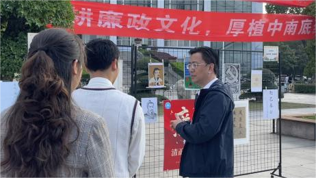 新闻网讯(通讯员 王晓丹 学生通讯员 李家琪 摄影 周乐恒)为进一步落实党的二十大关于反腐倡廉的号召,深入推进廉政文化系列成果走向师生、走进生活,更好发挥学院专业特长和优势,2023年10月9日至10月13日,“清风·廉韵”廉政文化作品展暨宣讲周在中南财经政法大学南湖校区五羊广场顺利举行。活动由刑事司法学院研究生会联合刑事司法学院硕士生2021级刑法学党支部、2022级刑法学党支部共同举办,刑事司法学院党委书记张志刚莅临指导,中南财经政法大学研究生会、中南财经政法大学研究生党员理论宣讲团、外国语学院研究生会、法学院硕士生2022级法制史党支部、刑事司法学院硕士生2021级刑法学党支部、2021级公安学党支部、2022级刑法学党支部、2022级公安党支部等前来参观。