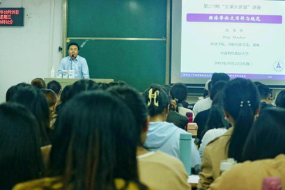 (通讯员:雷菁 摄影:陈丽)为了帮助刚入学的研究生们了解论文写作的重要性以及撰写过程中的技巧和注意事项,提高学术研究能力和论文撰写水平,2023年10月25日晚上19时,由中南财经政法大学研究生院、党委研究生工作部和校研究生会主办,经济学院研究生会承办的第275期“文澜大讲堂”之新锐论坛在文添楼308成功举办。讲座邀请了我校经济学院硕士生导师彭书舟老师担任主讲人,现场座无虚席,共一百二十多名经济学院研究生参与,参加讲座的同学们热情高昂。
