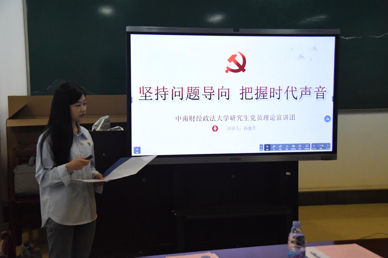 随后宣讲团成员孙逸芳以“坚持问题导向,把握时代声音”为题进行示范宣讲。