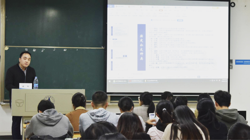 (通讯员 余文轩 陈梦洁 左喻文杰 摄影 彭傲)为提升研究生骨干公文写作能力和综合素质,提高研究生组织工作效率,中南财经政法大学研究生骨干能力培训第四期于11月7日晚上19:00在文添楼105开讲。我校党委办公室、学校办公室文秘科田柯老师受邀为校、院两级研究生组织骨干作“公文规范与写作”专题培训。党委研究生工作部思想政治教育办公室付慧娟老师、黄丽琼老师出席培训会。本次培训会由校研会秘书处干事黄宇轩主持。
