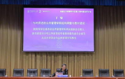 丁煌教授作“与时俱进的公共管理学科结构调整与教材建设”的主题报告,基于新一轮学科结构调整总结了公共管理学科教材建设的重要性及公共管理学科结构的未来发展方向。丁煌教授指出当前公共管理学科教材普遍存在缺乏系统观念和层次性的问题,导致学生感知的大量重复,提出应在二十大所强调的系统观念的指导下进一步优化现存问题。丁煌教授强调,结构调整是对国家新时代、新征程发展战略的主动且有意识的回应,提出了学科结构调整和完善的“四个迫切”,即公共管理一级学科与其他相关学科之间存在矛盾迫切需要学科结构的完善、公共管理改革实践迫切需要学科结构完善、新兴的先进技术手段的应用和新一轮科技革命迫切需要学科结构的完善、开放的全球化时代背景下迫切需要公共管理学科技术完善。
