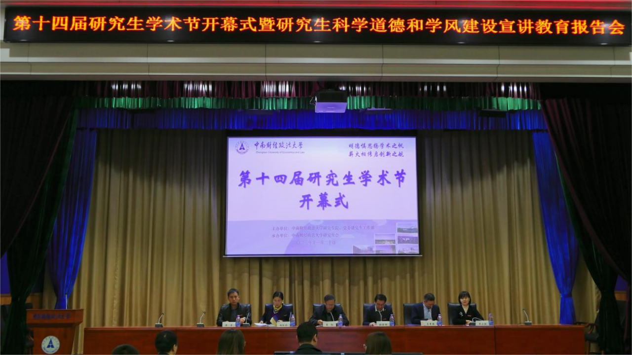 (通讯员 付慧娟 江剑 李立群 陈梦洁 摄影 李正一 郑丽娟 陆徐美)为深入学习宣传贯彻党的二十大精神,深刻学习领会习近平总书记关于弘扬科学家精神和加强作风学风建设工作重要指示精神,11月20日上午,我校第十四届研究生学术节开幕式暨研究生科学道德和学风建设宣讲教育报告会在文泉楼学术报告厅隆重举行。校党委常委、副校长覃红教授,科学研究部部长张金林教授,研究生院院长胡弘弘教授,党委研究生工作部肖翠祥部长,团委黄小妹书记出席开幕式,党委宣传部、研究生院、党委研究生工作部主要负责人,全校19个研究生培养单位分管研究生思政工作和教育工作的领导、研究生工作办公室老师以及华中地区兄弟高校的研究生代表参加了开幕式。开幕式由胡弘弘院长主持。