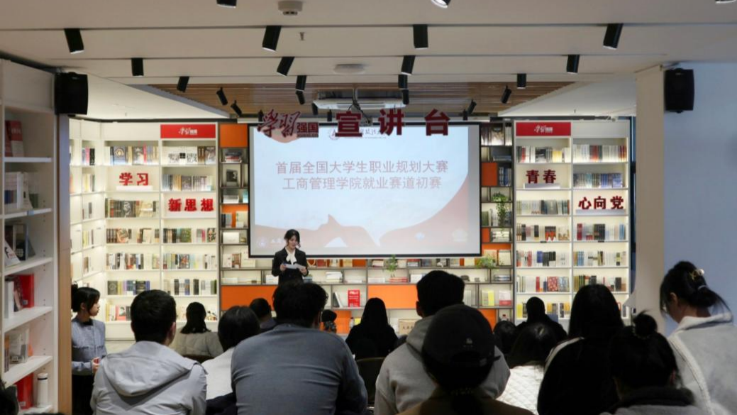 (通讯员 刘轶 崔可馨 摄影 梁奕昕 王雨欣)为贯彻落实党中央、国务院关于高校毕业生就业工作决策部署,进一步普及大学生职业生涯规划知识,指导大学生科学合理地规划大学学习与生活,树立正确的成才观、就业观,提高其就业技能与实践能力,顺利实现高质量充分就业,按照《教育部关于举办首届全国大学生职业规划大赛的通知》(教学函〔2023〕1号)、《省教育厅关于举办首届全国大学生职业规划大赛湖北省分赛的通知》(鄂教学函〔2023〕3 号)等文件精神,秉承“以赛促学”、“以赛促教”、“以赛促就”的办赛宗旨,工商管理学院于2023年11月27日在倍阅书店组织开展了首届全国大学生职业规划大赛院赛(就业赛道)。