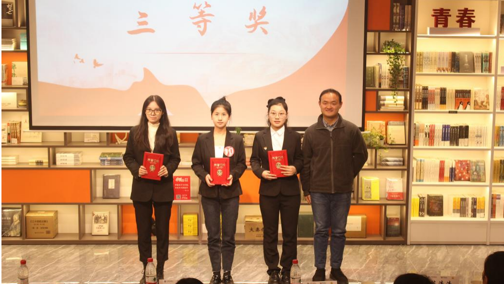 经过激烈角逐,杨玉婷荣获一等奖,郭倩桦、蒋明仪荣获二等奖,杜静妍、段纤纤、钱程荣获三等奖,张幸琼等十位同学荣获优秀奖。比赛结束后,五位评委老师为获奖选手颁奖并合影留念。
