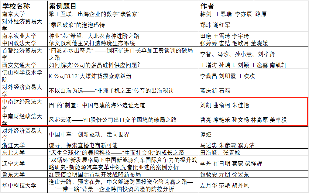 全国国际商务专业学位研究生教育指导委员会示范案例库入库案例名单(截选)