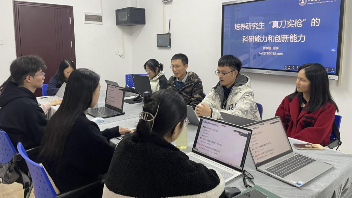 (通讯员 王路芳 赵金旭 摄影 陈兵艳)为深入贯彻落实习近平总书记关于教育的重要论述,进一步发挥“一站式”学生社区育人阵地作用,践行“一线规则”,推动研究生导师下沉进驻学生社区,完善协同育人体系,127日下午,由研究生院、党委研究生工作部主办,哲学院承办的第三期“导师讲堂进学生社区”活动,在望湖公寓2115导师工作室举办。本期活动以“研究生如何培养‘真刀真枪’的科研创新能力”为主题,特邀哲学院研究生导师何李老师主讲,部分研究生参与此次活动。