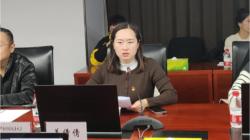 湖北省电力规划设计研究院勘测市政党支部代表刘小婷从“紧跟政策、双重引擎、主动出击”三个方面介绍了企业发展方向和取得的成绩。中南财经政法大学工商管理学院研究生党总支代表姜倩倩介绍了学院概况以及研究生党建工作取得的成绩。