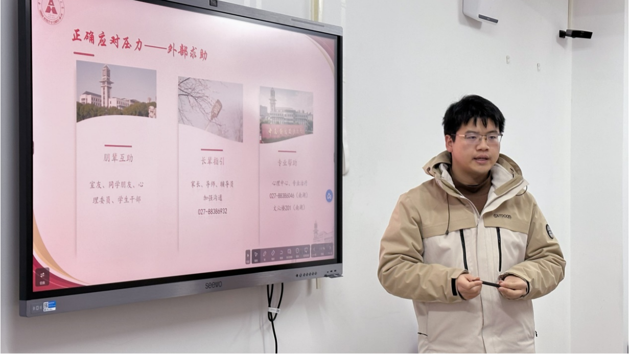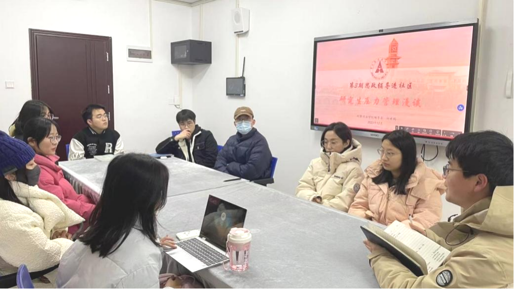 (通讯员 柯希鹏 欧阳欣诺 摄影 陈俊羽 伍佳怡)为进一步发挥“一站式”学生社区育人阵地作用,践行“一线规则”,推动研究生辅导员下沉进驻学生社区,形成全员全过程全方位育人格局,12月21日下午,由党委研究生工作部主办,刑事司法学院承办的第三期“思政辅导进学生社区”活动在望湖公寓2栋115导师工作室举办。本次活动以“研究生心理压力管理漫谈”为主题,旨在引导研究生正确对待学习生活中的压力与挑战,培养积极健康心态。刑事司法学院研究生辅导员柯希鹏老师担任主讲人,2023级部分研究生参与交流。