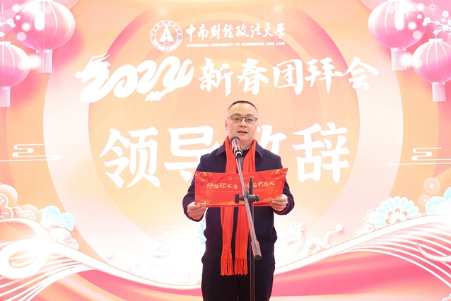 校党委副书记陈狮在新年致辞中代表学校向大家致以新年的问候和美好的祝福。他指出,2023年是学校“双一流”建设加快推进、高质量发展持续向上向好的一年。在全校师生员工的共同努力下,学校全面学习贯彻党的二十大精神,扎实推进学习贯彻习近平新时代中国特色社会主义思想主题教育,隆重庆祝建校七十五周年,弘扬践行社会主义教育家精神,积极助力学生成长成才。这些办学成绩的取得凝聚了大家的集体智慧和辛勤汗水。2024年是新中国成立七十五周年,是全面贯彻落实党的二十大精神的关键之年,也是学校“双一流”建设抢抓机遇的重要之年。学校上下将凝心聚力、开拓进取、守正创新,进一步优化学科布局、彰显办学特色、强化五育并举、提高服务保障,在建设财经政法深度融通特色鲜明的世界一流大学道路上,展现更大作为、实现更大突破、取得更大成效。