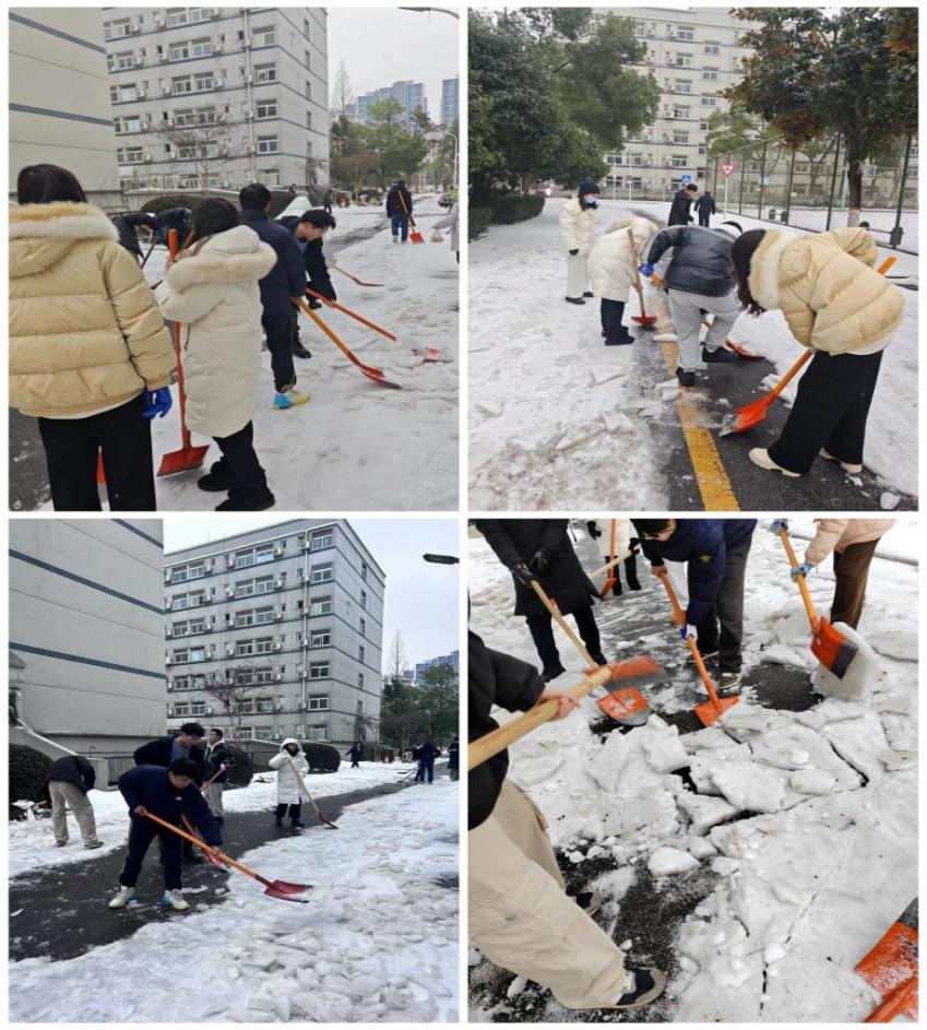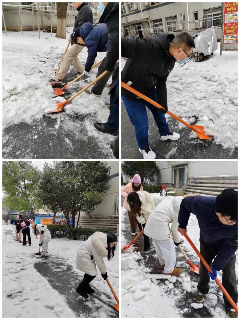 (通讯员 马晨娇 周诗琪 王致海)律回春渐,新元肇启。正值开学返校之际,武汉市寒潮冻雨持续来袭,校园路面冰层堆积、湿滑难行。为保障师生出行安全,法律硕士教育中心积极响应校组织部、研工部共同参与校园积雪清扫工作号召,第一时间动员师生参与,成立“战冰斗霰”志愿服务小组。广大师生积极报名,法律硕士教育中心全体老师参与,学生党员带头,主动作为,为师生开辟“平安路”。
