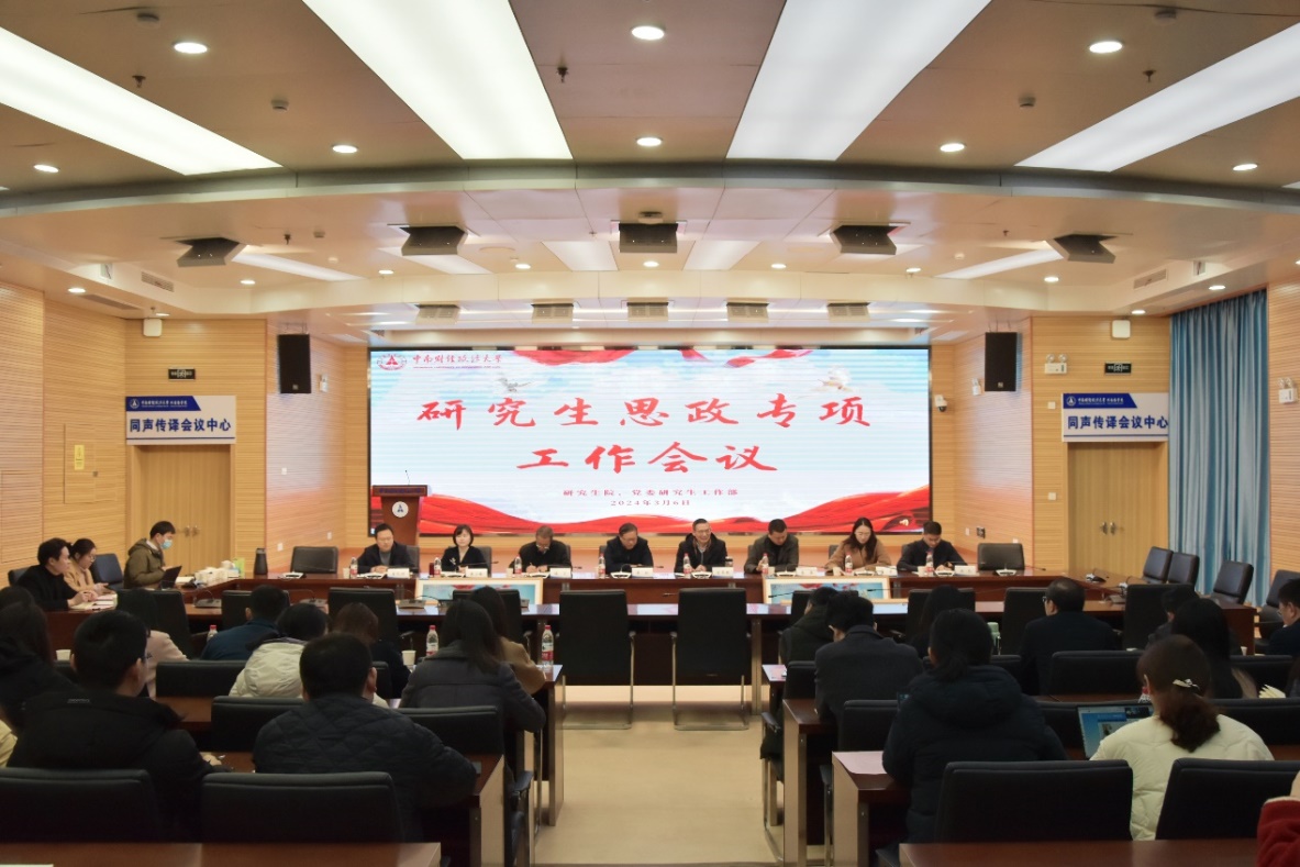 (通讯员 付慧娟 黄丽琼 摄影 付慧娟)为做好2024年春季学期研究生思政教育管理工作,进一步增强思想政治教育工作的针对性和有效性,3月6日下午,学校于文澴楼南附楼同声传译会议室召开2024年春季学期研究生思政专项工作会议。校党委常委、副校长覃红出席指导、党委组织部、研究生院、党委研究生工作部、保卫部、团委、就业指导服务中心等职能部门负责人、各学院(中心)分管研究生思政教育工作负责人和全体专职研究生辅导员参加会议。党委研究生工作部部长肖翠祥主持会议。