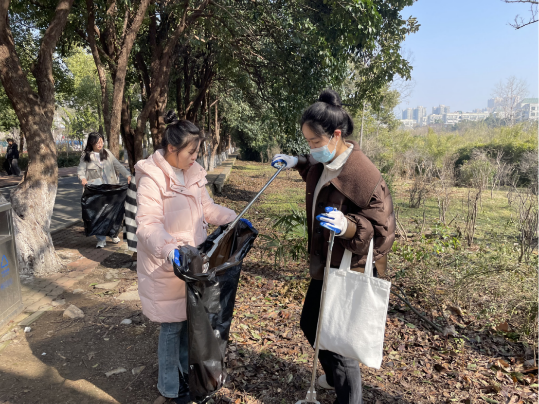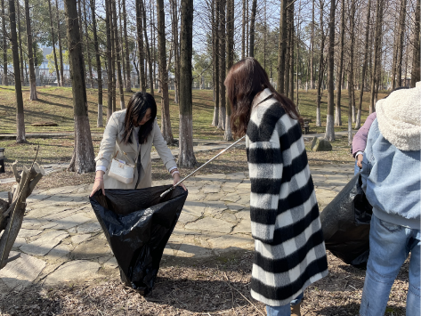 上午十点,志愿者们准时到达指定的位置集合,领取清洁手套、垃圾袋、垃圾夹等清洁工具。前往事先划分好的清洁区域进行打扫,带着清洁手套用垃圾夹、垃圾袋等清洁工具将小树林、水池边、花坛边以及一些卫生死角里的碎纸屑、包装袋、废弃杂物等垃圾一一清理。