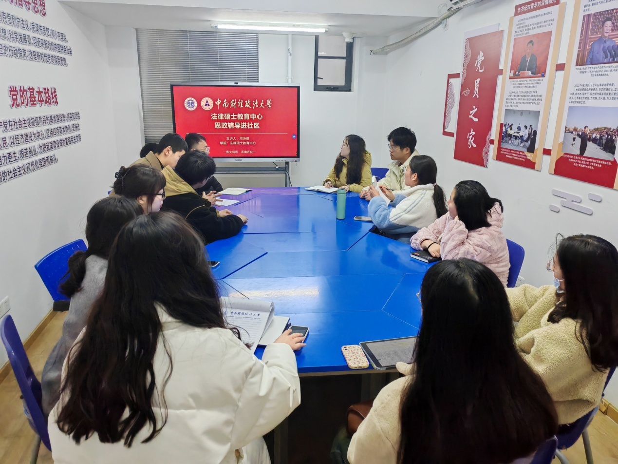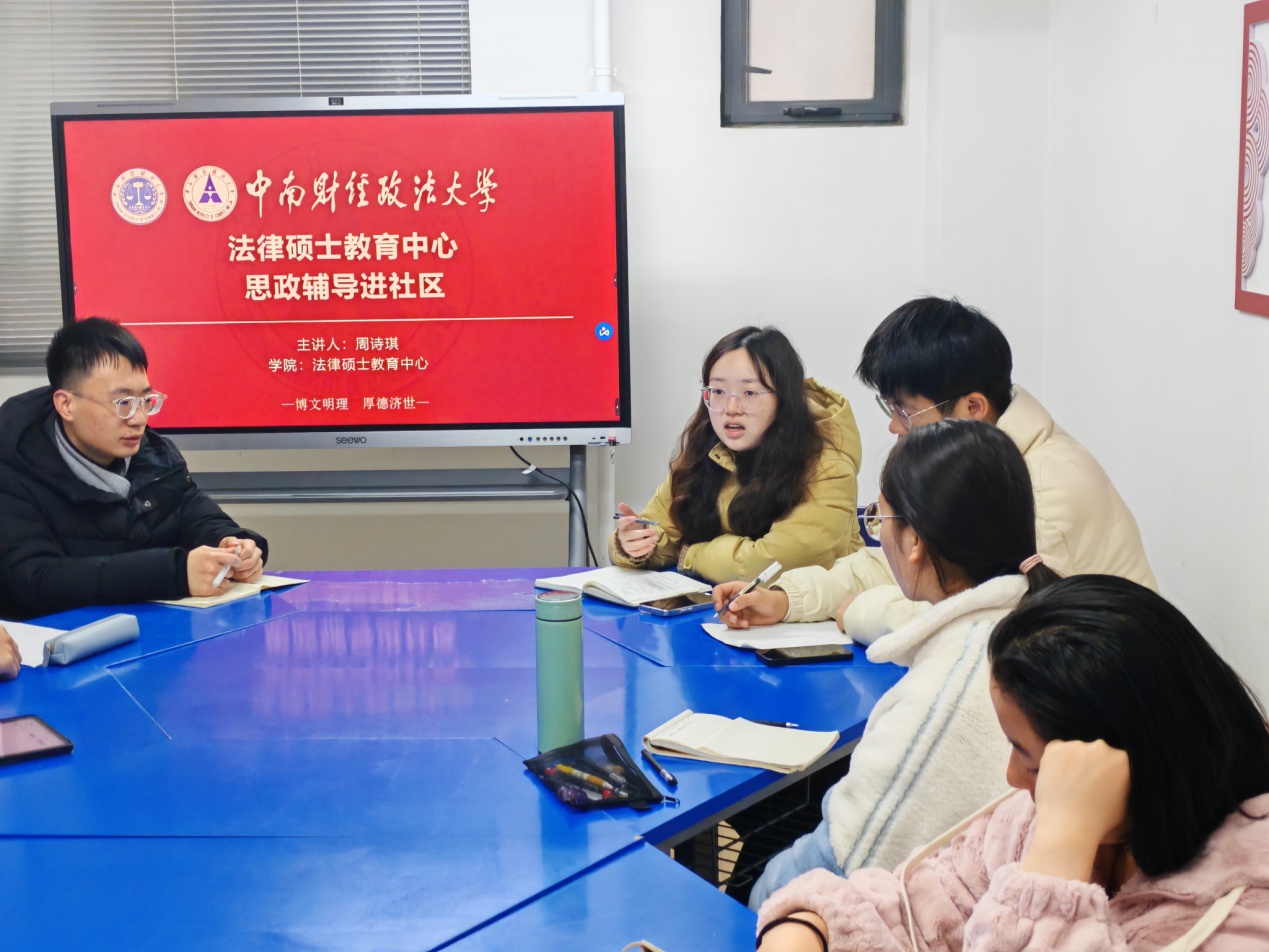 (通讯员 周诗琪 王致海)为了解学期初研究生思想和心理状况,进一步发挥“一站式”学生社区育人阵地作用,加强思想政治教育引领,3月4日上午,由党委研究生工作部主办、法律硕士教育中心承办的第四期“思政辅导进学生社区”活动在望湖公寓2栋112党员活动室举办。本次活动以“研究生如何调节学业与生活压力”为主题,由辅导员周诗琪老师主讲,法律硕士教育中心2023级部分研究生参与交流。