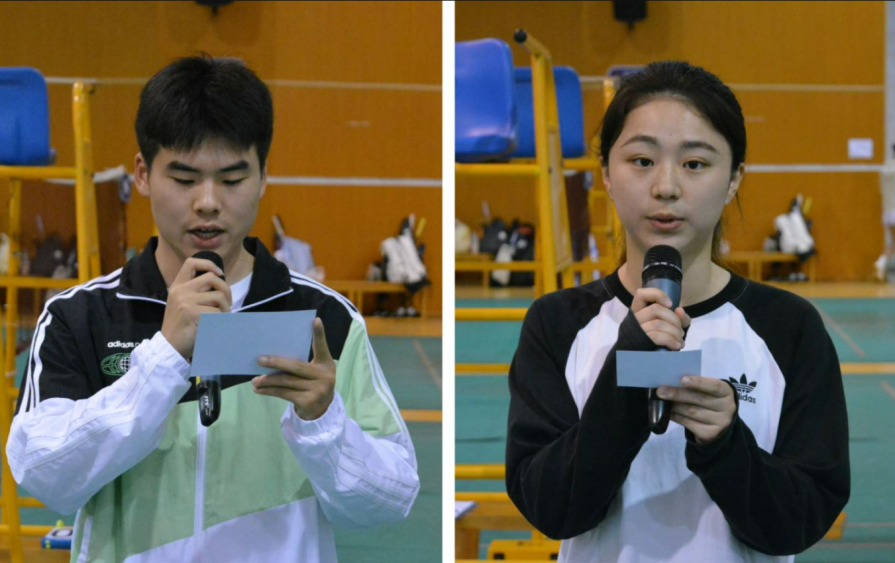 早上8点,18支参赛队伍列队整齐,精神焕发。校羽毛球协会会长侯梦琦代表裁判员宣誓、知识产权学院刘雨涛代表运动员宣誓,比赛正式拉开帷幕。