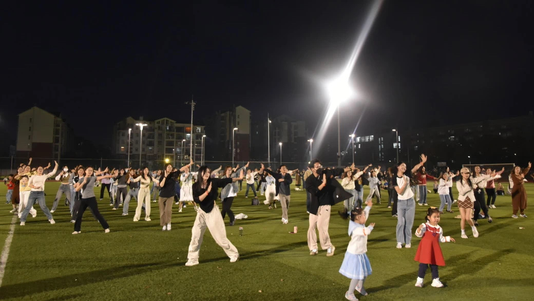 (通讯员 付慧娟 黄丽琼 陈梦洁 摄影 胡雪涵 章嘉薇)为深入贯彻《教育部全面实施学校美育浸润行动的通知》精神,进一步丰富校园文化内涵,激发广大研究生学子对运动的热情,党委研究生工作部精心策划并组织了别开生面的2023-2024学年“青研杯”研究生健身舞系列活动。3月29日晚上19:00,首场活动在环湖足球场正式开启,吸引了两百余名研究生的热情参与,还有老师们、外国留学生和小朋友们积极加入,共同为校园注入了一股青春与活力的新风尚。