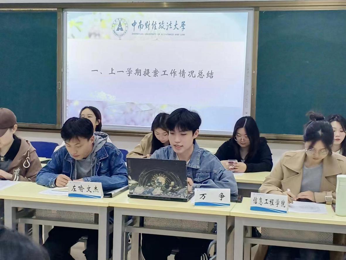 会上,马克思主义学院、经济学院、金融学院以及信息工程学院研究生会负责人对上一学期提案工作情况进行分析与总结,从聚焦研究生校园生活质量、有效收集整理提案、创新设立生活实践小组等方面分享了权益维护工作的成效。哲学院、财政税务学院、文澜学院以及刑事司法学院研究生会负责人介绍了本学期提案工作规划并计划从提案文字表述、上报反馈、院内对接、校院协同等方面着手,提升提案工作的精准性。
