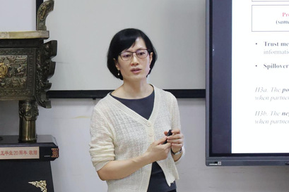 在互动提问环节中,工商管理学院师生就“该领域未来研究方向以及与其他领域的合作可能”等问题与王鹤丽教授展开了深入研讨,王鹤丽教授耐心聆听并分享了自己的见解和想法,同时鼓励同学们从多角度多方面思考企业社会责任和联盟合作的关系。
