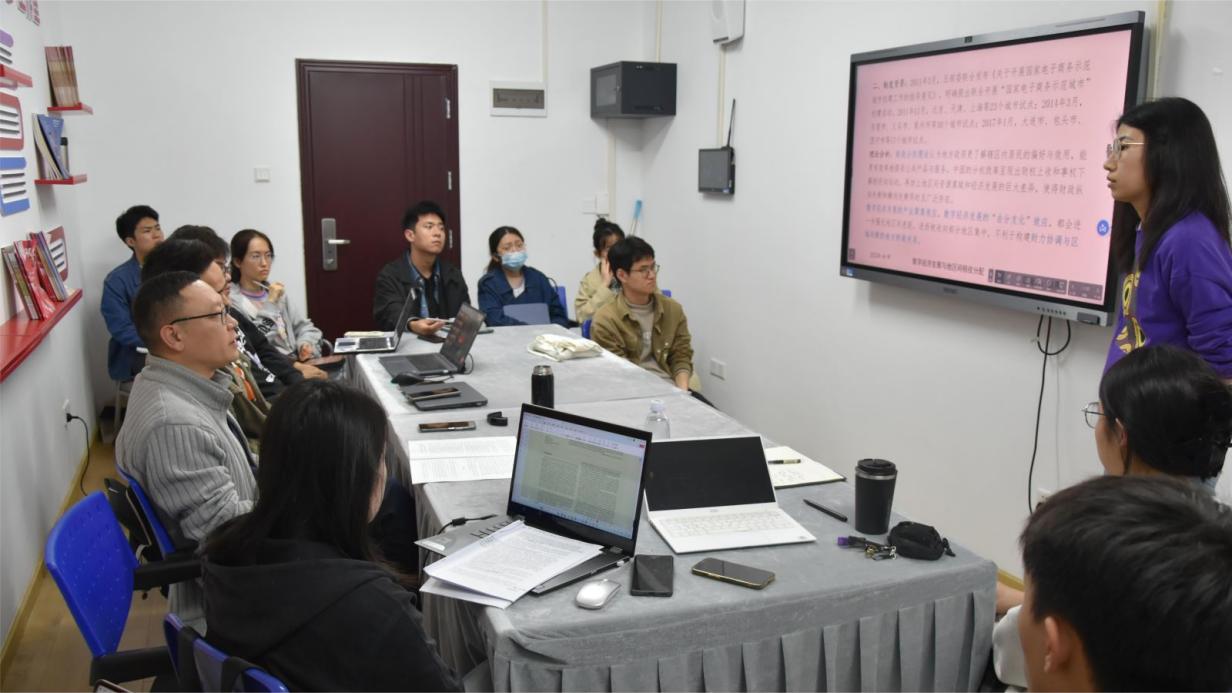 张燕博士首先分享了题为《数字经济发展与税收横向分配——来自企业所得税的证据》的科研论文,梳理了我国数字经济发展的历程,分析了我国税收横向分配的现状,对已有相关文献进行了系统性回顾,并介绍了文章的研究设计、基本结论等内容。同学们对文章存在的不足进行了讨论,对后续的修改提出了许多中肯建议。