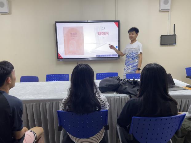 荐书环节,陈卓结合自身经历为大家推荐《乡土中国》,他谈到这本书揭示了乡村社会的运作逻辑和文化内涵,可以帮助大家更好的理解乡村社会、传统文化和现代社会转型。段文豪为大家推荐《理想国》,谈到这本书探讨了正义、道德、哲学等诸多问题,能帮助我们理解复杂的哲学思想。王婷子推荐了《月亮与六便士》,希望大家都可以有勇气去寻找自己的月亮。