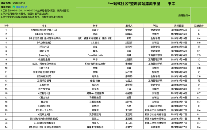 (通讯员:高慧 左喻文杰 摄影:陈卓)为深入贯彻落实习近平总书记“希望全社会都参与到阅读中来,形成爱读书、读好书、善读书的浓厚氛围”的重要指示精神,推动书香校园建设,4月24日下午,由校研究生会功能型党支部组织开展的“为中国式现代化挺膺担当——青春年少好读书”主题读书活动第一期暨“春风拂书,书香漫游”图书漂流活动总结会在南湖一站式学生社区望湖驿站举办,社区兼职辅导员陈卓、高慧、校研究生会骨干,各学院研究生代表参与活动。