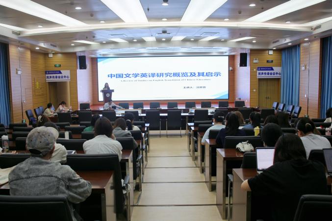 讲座伊始,汪世蓉教授以文学学术研究的意义以及研究生在学术写作之前应遵循的三个步骤为切入点,旁征博引,进入主题。汪教授首先对国内外学术界在中国古典文学及现当代文学英译研究领域(2000-2023)的研究现状进行了系统梳理,分析其发文数量、热点议题、阶段性特征与发展趋势、研究内容、视角及方法,总结重要研究成果,引导同学们把握中国文学“走出去”研究的前沿动态。