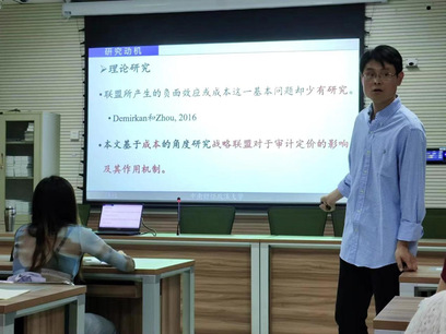 最后,徐欣教授分享了其研究成果——《上市公司战略联盟对审计定价的影响研究:理论与证据》。该研究探询了几个关键问题:战略联盟是否会影响企业的审计定价,联盟双方审计费用的增长是否呈现出非对称效应,以及战略联盟的治理结构是否能够调节联盟企业审计费用的增长效应。从初步的研究设想到严谨的实证检验,再到面对审稿过程中的挑战与所获心得的分享,徐教授不仅展现了学术研究的严格性与深度,也体现了一位学者在探索未知领域时所展现的勇气和毅力。这些分享不只为听众提供了如何进行高品质学术研究的范例,也鼓舞了大家在自己的研究领域中追求卓越的精神。