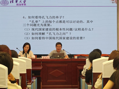 随后,景跃进教授详细分析了美国已故著名学者孔飞力教授的《中国现代国家的起源》一书,并借用“孔飞力之问”提出三个问题并给出自己的见解。第一,中国现代国家建设的根本性问题或议程是什么?他认为孔飞力选择性地“忽视”了“现代中国”的形成问题,以及这个问题对于中国“现代国家”建构的制约性作用;中国现代国家建设的根本性问题或议程是如何保持中国存在的前提下,既能建设成为统一、强大和有效率的国家,又能建设成为一个在宪制建设、公民参与等基本问题上具有现代意义的国家。第二,如何理解“孔飞力之问”?他强调“孔飞力之问”与“李约瑟之问”“韦伯之问”的表述结构是一致的,都是表达的“为什么不能”,这样的表达逻辑是将西方标准转化为具有普遍性的标准然后再用来衡量中国,是值得商榷的。第三,如何看待中国现代国家建设的前景?他指出无论是孔飞力的参与、竞争与控制,还是福山的国家能力、法治和问责,都是从西方现代化经验中提炼出来的概念,值得我们借鉴,但未必要照搬;中国特色社会主义制度的本质特征是中国共产党的领导,这意味着我们需要反思和重构政治现代性的概念。