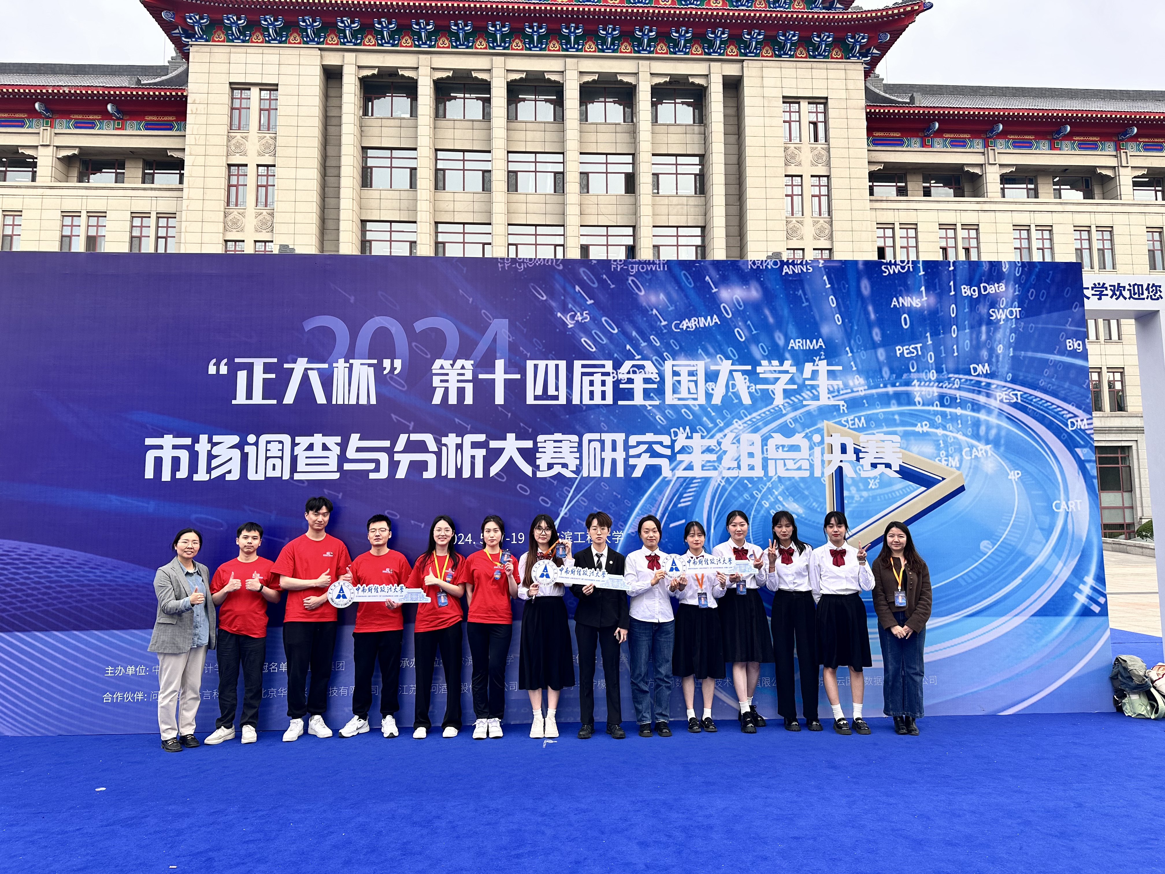 (通讯员 吴志伟 杨白冰)5月18日至19日,由中国商业统计学会主办、哈尔滨工程大学承办的“正大杯”第十四届全国大学生市场调查与分析大赛研究生组总决赛顺利闭幕,学院学办主任陈盈、2022级辅导员伊帕尔古丽·吐尔孙江带队参加比赛。经过两天的激烈角逐,统数学子斩获国家一等奖2项,国家二等奖1项,国家三等奖3项,学校荣获“最佳院校组织奖”。