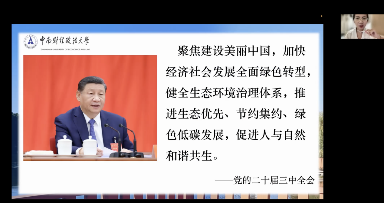 包爱妮以《聚焦美丽中国建设,落实生态环境保护——坚定不移 深化生态文明体制改革》为题,介绍了中国生态文明建设的成就和习近平生态文明思想的核心理念。