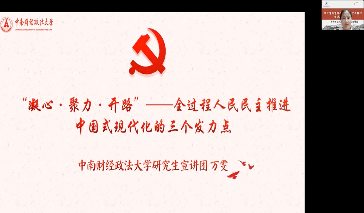 接下来,中南财经政法大学研究生宣讲团将持续做好课程打磨,提升宣讲成员的理论素养与宣讲水平,以朋辈宣讲推动党的创新理论入脑入心。