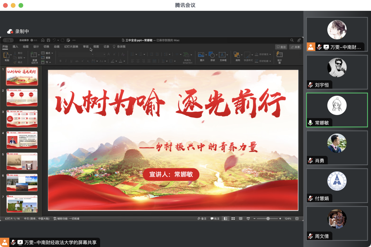 常娜敏以《以树为喻 逐光前行——乡村振兴中的青春力量》为题,结合党的二十届三中全会有关乡村振兴的战略部署,以三位青年的典型故事阐明了乡村振兴中的青春力量。