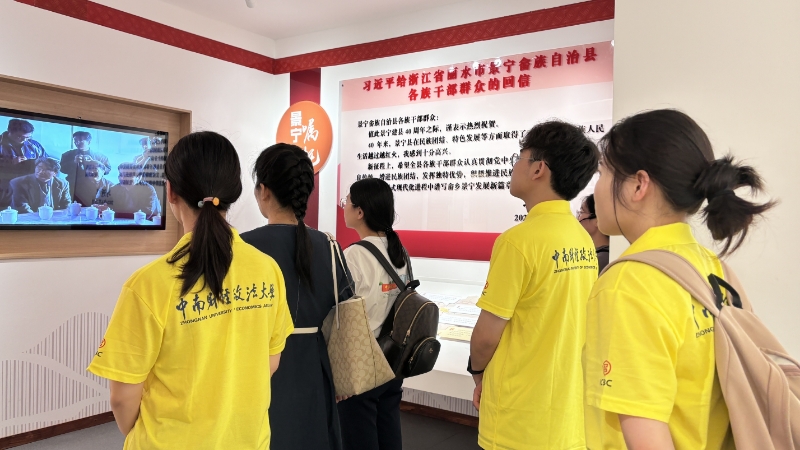 (通讯员 黄千芷 陈芷姗 摄影 崔倩茗 朱家仪)为深入学习贯彻党的二十届三中全会精神,调研学习习近平总书记系列重要讲话精神,引导和帮助研究生学子上好理论与实践相结合的“大思政课”,充分发挥实践育人功能,以火热青春献礼新中国成立75周年,在学校党委研究生工作部和团委共同指导下,中南财经政法大学研究生会社会实践队师生一行于8月13日至16日在浙江省乐清市和丽水市开展题为“乡村振兴战略背景下新质生产力赋能城乡融合发展之路”的国情考察与调查研究并开展“供需对接”就业调查实践活动。实践队师生循着习近平总书记调研考察足迹,进企业、进基层、进乡村,以主题学习、座谈交流、入户调研等方式深入开展实践调研活动,学深悟透习近平总书记重要回信精神、感悟总书记领袖魅力和人民情怀,进一步深化对全面实施乡村振兴战略的成效感悟,探索大学生返乡就业与创业新路径。