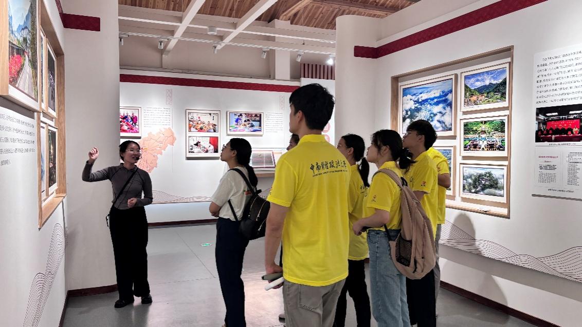 实践队师生重温习近平总书记在浙江工作期间到景宁调研时的场景画面