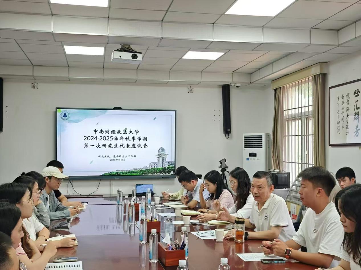 (通讯员 黄千芷 万意 杨朦冰 摄影 牛一先 )为全面了解研究生学子暑期返校前后的思想状况,提升研究生思想政治教育工作针对性和实效性,专题了解同学们关于学校教学资源使用的建议和意见,进一步畅通校院两级沟通交流渠道平台,2024年9月19日上午10:00,学校于研究生院二楼会议室召开2024-2025学年秋季学期第一次研究生代表座谈会。党委研究生工作部肖翠祥部长、李芳副部长、相关科室负责人出席会议。校研究生会主席团成员、各研究生培养单位研究生会主席团成员代表、研究生骨干参加座谈会。座谈会由思政办主任付慧娟主持。