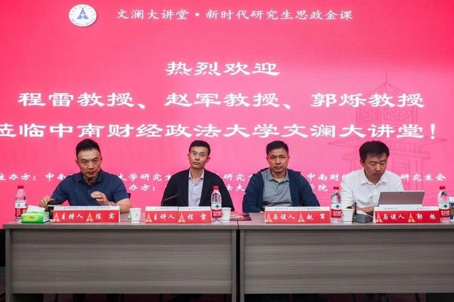 (通讯员:吕瑞)9月27日上午,由我校研究生院、党委研究生工作部、研究生会主办,国家治理学院、法学院承办的“文澜大讲堂·新时代研究生思政金课”在法学科研大楼一楼党团活动室顺利进行。本场讲座紧跟时事,聚焦“《监察法》修改前瞻”主题,特邀中国人民大学法学院副院长程雷教授担任主讲人,北京师范大学法学院犯罪学研究所所长、中国犯罪学学会副会长赵军教授和中国政法大学诉讼法学研究院郭烁教授担任与谈人,国家治理学院副院长陈实教授担任主持人。我校纪检监察学科和诉讼法学科博士及硕士研究生参加讲座。