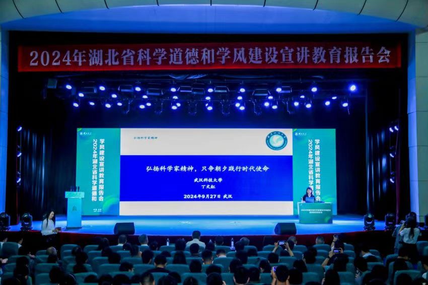 (通讯员 付慧娟 邓颖 曹溢 陈玉豪 摄影 朱家仪)为学习贯彻习近平总书记关于弘扬科学家精神和加强作风学风建设工作重要指示精神,落实全国科学道德和学风建设宣讲教育领导小组工作要求,由省科协等七部门联合举办的2024年湖北省科学道德和学风建设宣讲教育报告会于9月27日在湖北大学举行。学校新入职青年教师代表、研究生代表一行三十人前往参加并现场聆听,学校党委研究生工作部杨威老师带队。