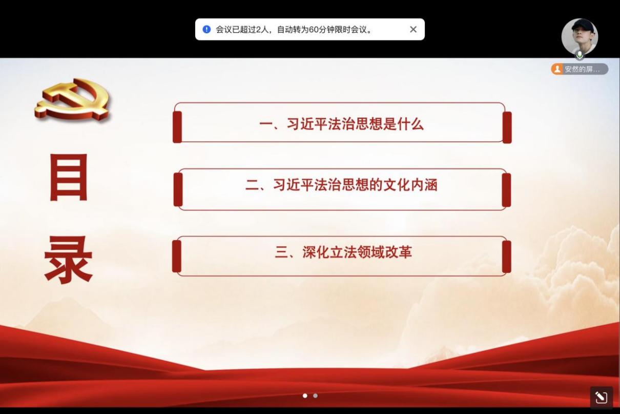 2024年10月,新闻与文化传播学院各研究生党支部组织开展“学习习近平法治思想”主题微党课。研究生第一党支部以“学习习近平法治思想,加强涉外法治建设”为主题开展专题微党课。党支部书记吴暇领学了习近平法治思想中关于涉外法治建设的重要论述,结合当前国际形势和我国对外开放的实际情况,分析了加强涉外法治建设的必要性和紧迫性。同学们纷纷表示,要努力学习涉外法律知识,提高自身的新闻素养,为我国的涉外法治新闻建设贡献自己的智慧和力量。研究生第二党支部的微党课以“学习习近平法治思想,全面推进依法治国”为主题。党支部书记王锦慧从习近平法治思想的核心内容、如何在实践中推进依法治国等方面进行了详细讲解。通过党课学习,同学们进一步明确了自己在推进依法治国进程中的责任和使命,纷纷表示要积极参与法治宣传活动,为建设社会主义法治国家贡献自己的一份力量。研究生第三党支部的专题微党课围绕“学习习近平法治思想,蓄力笃行促担当”展开。党支部书记刘思佳通过生动的案例和深入浅出的讲解,引导同学们深刻理解习近平法治思想的内涵和要求。同时,鼓励同学们在学习和生活中勇于担当作为,积极践行习近平法治思想,为实现中华民族伟大复兴的中国梦而努力奋斗。