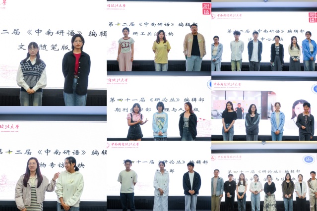 两位同学发言后,《研论丛》编辑部、《中南研语》编辑部新一届编委会成员以版块(部门)为单位,依次进行集体亮相并相互作介绍。各版块(部门)的介绍各具特色、精彩纷呈,不仅让编委会成员加深了彼此之间的了解,更充分展示了同学们的蓬勃朝气。
