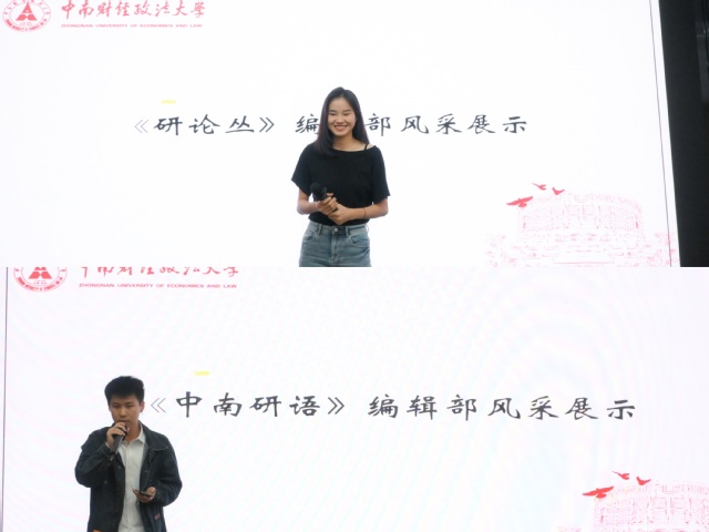 集体亮相结束后,《研论丛》和《中南研语》编辑部的同学进行了风采展示。同学们演唱的歌曲,情感真挚,充分展现了新一届编委会成员的精神面貌和青春风采。