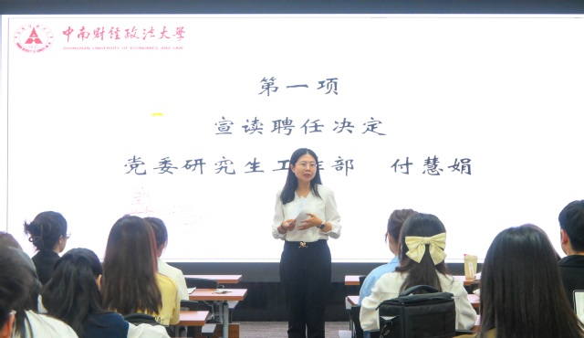 (通讯员 付慧娟 黄丽琼 王美浔 汪婧童 摄影 张晓芳)10月10日下午16时,《中南财经政法大学研究生论丛》(简称《研论丛》)编辑部第四十一届编委会、《中南研语》编辑部第十二届编委会新成员见面会在法学实验大楼党员活动室顺利召开。党委研究生工作部研究生思想政治教育办公室付慧娟老师、黄丽琼老师受邀出席,编辑部新一届编委会全体成员参加会议。见面会由《中南研语》编辑部常务副主编牛淮田主持。