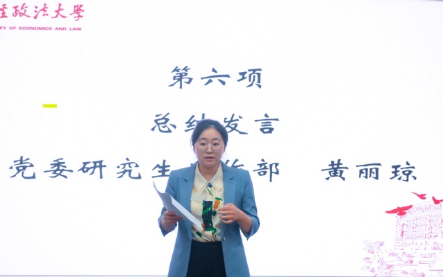 会议最后,黄丽琼老师作总结发言。黄老师表达了对全体编委会成员的充分肯定,并指出《研论丛》和《中南研语》是研究生院、党委研究生工作部指导的校级研究生自办刊物,新一届编委会成员要明确组织定位、把握刊物特色、担当职责使命,进一步加强对党的最新理论成果的学习,及时跟进时事热点,不断提升政治素养;强化底线思维,提升业务能力和综合素养,提高防范化解风险的能力;注重传承两份刊物在长期发展中形成的丰厚历史积淀和优良办刊传统,促进组织更好发展的同时,实现个人综合素质的全面提升。