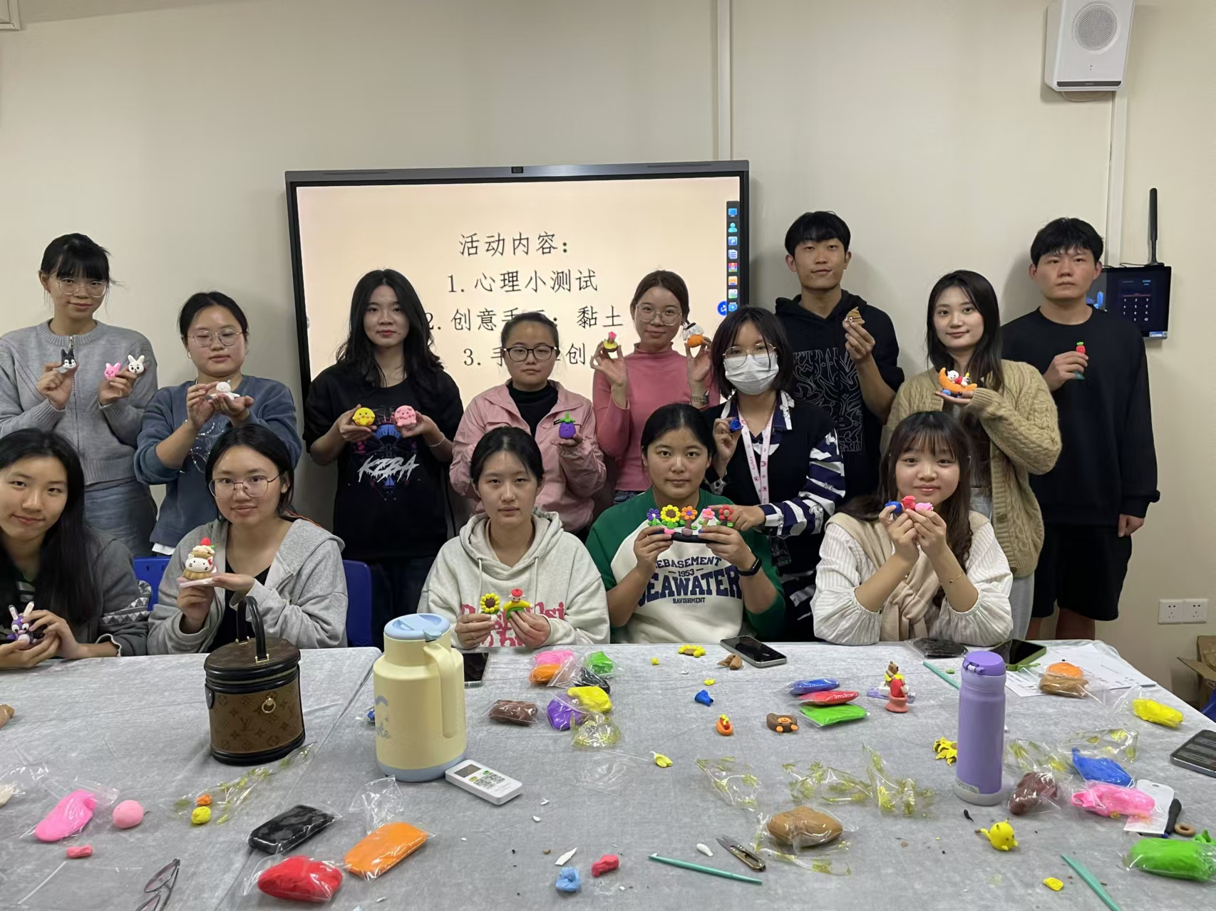 (通讯员 魏雅楠)为促进学生对传统文化的学习传承,提升创新实践能力,学习培养团队协作精神,塑造更加健康完善的人格,在党委研究生工作部指导下,望湖公寓研究生管理委员会联合我校研究生心理健康协会于10月26日下午在“一站式”南湖学生社区望湖驿站开展“艺心筑梦,黏土绘情”手工黏土体验活动。社区兼职辅导员高慧、陈卓,研究生心理健康协会成员及10余名研究生同学代表共同参与。