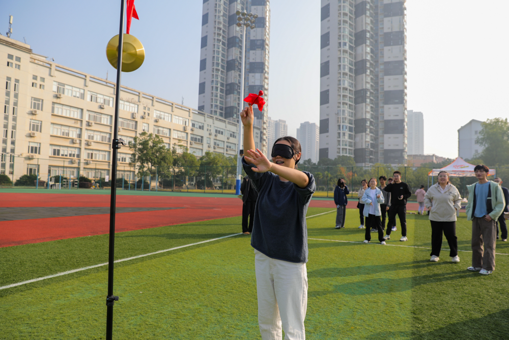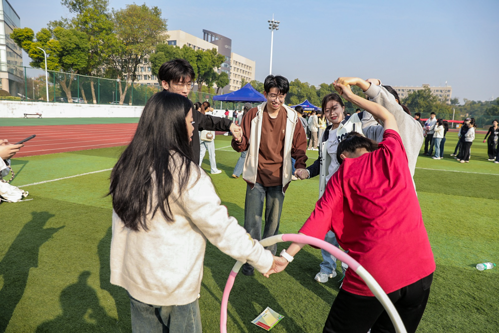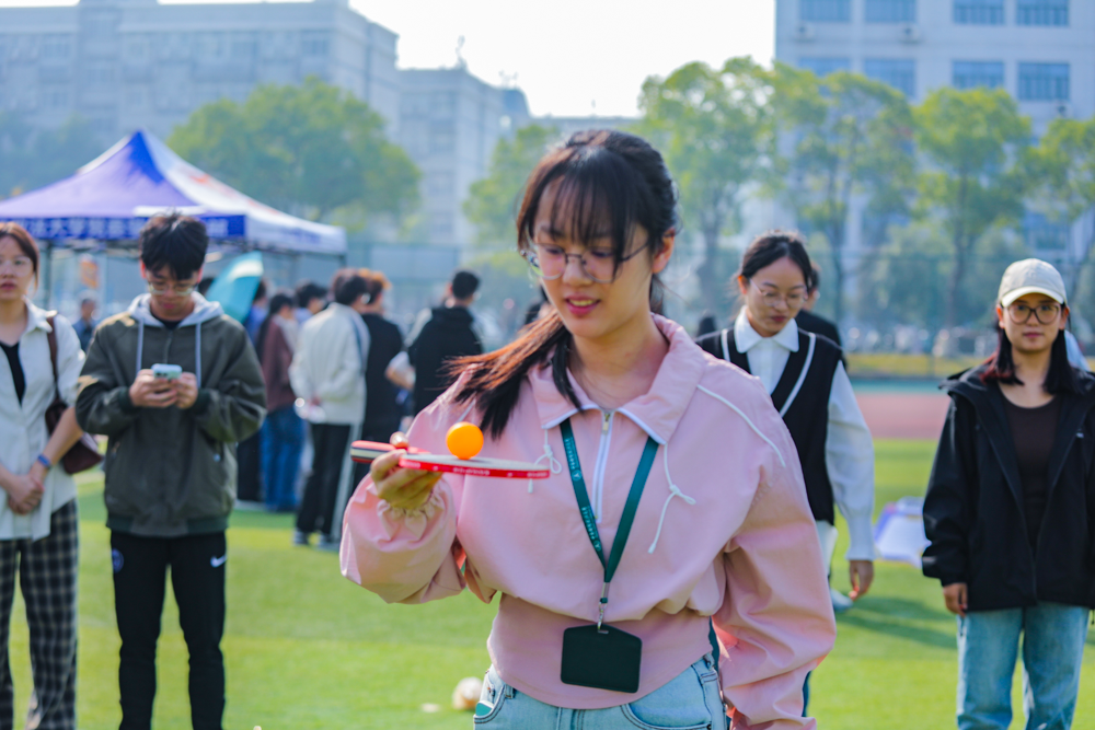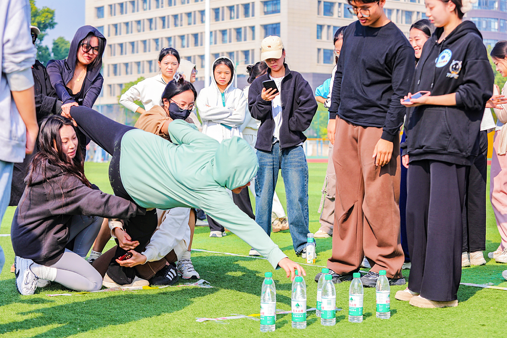 活动现场有12家来自不同学院的研究生会特设的运动项目,包含:“两人三足plus版”“指压板跳绳”“一圈到底”“投中经彩”“穿针引线”“夹球竞走”“足式保龄球”“乒乓接力”等12项关卡,大家在趣味打卡中汗流浃背,在团结中尽显文韬武略。本次活动既是运动会,又是大聚会,为研究生带来了沉浸式的以运动为主题的“秋日约会”。