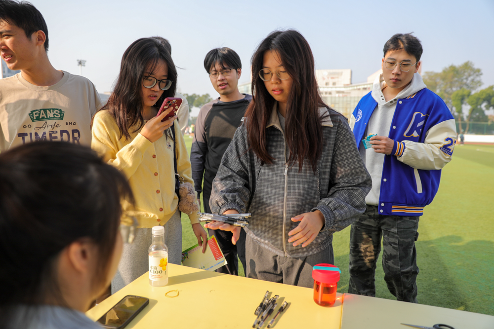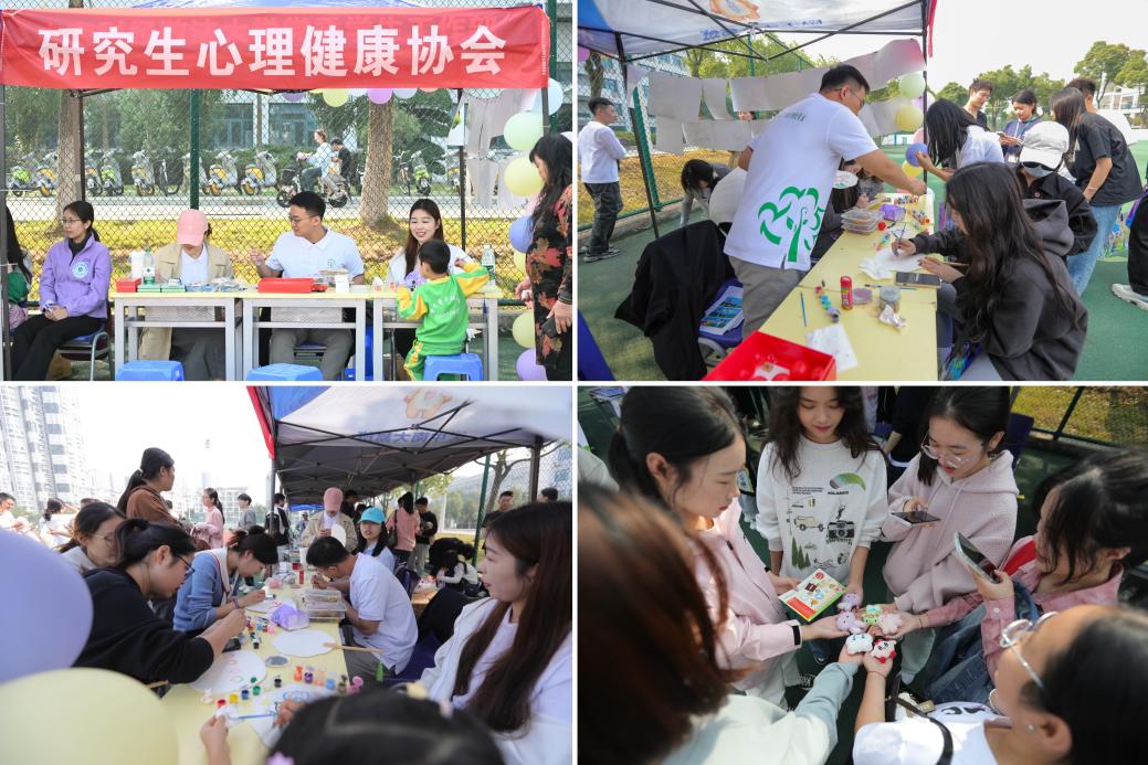 在团体运动项目开展的同时,现场还有研究生心理健康协会开展的“情绪猜猜乐”“微笑定格”“团扇DIY”等心理互动体验环节,这些活动不仅为同学们在轻松愉悦的环境中提供了心理成长的契机,还极大地促进了相互间的沟通与理解,帮助同学们更深入地认识自我,有效释放学习压力,显著增强了心理调适与应对能力。