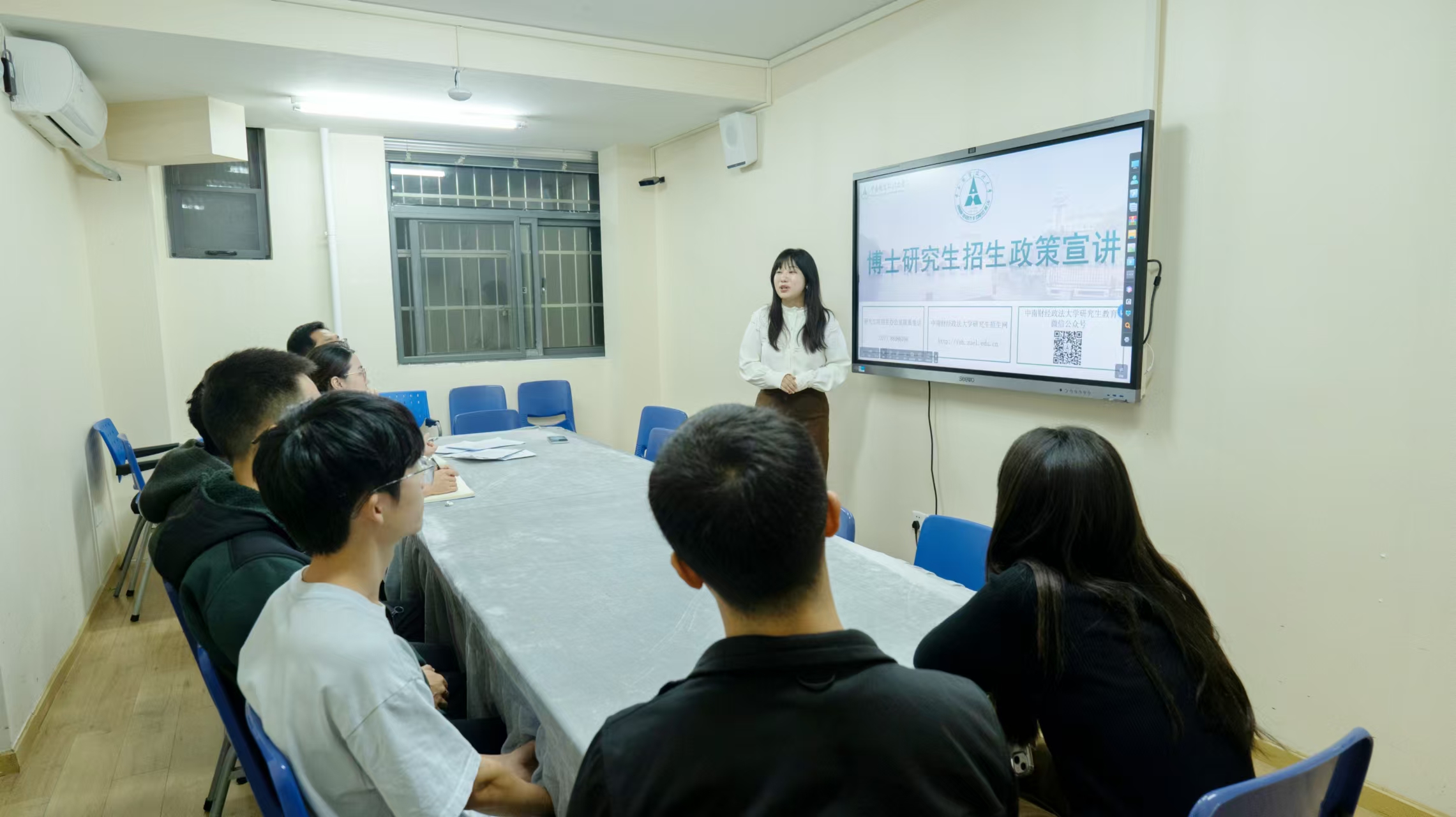(通讯员 刘桐 摄影 洪佐仪)为帮助同学们了解学校博士研究生招生政策,鼓励在校硕士研究生在明确自身发展规划的基础上,积极报考博士研究生,激发同学们的考博动力,明确考博目标,明晰考博流程,10月31日晚,党委研究生工作部主办的第十一期“思政辅导进学生社区”活动在望湖公寓2栋113多功能会议室举办。本次活动以“‘博’亦有道——考博政策宣讲与交流”为主题,由“一站式”学生社区兼职辅导员刘桐老师主讲,社区兼职辅导员张景瑜老师、李绪莹老师和部分研究生参加活动。