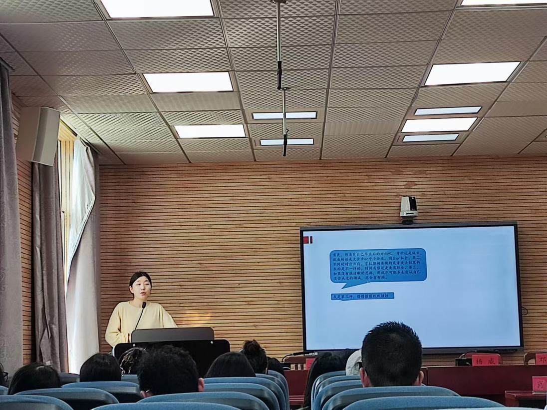 (通讯员 赵伟)为助力我院研究生更好地规划职业生涯,明确职业目标,提高职业素养,10月18日下午14:30,马克思主义学院于文沛楼409开展了“研职有道”之职业规划专场讲座。本次讲座由就业中心郭婉钰副教授主讲,马克思主义学院2024级全体成员参加了这次讲座。