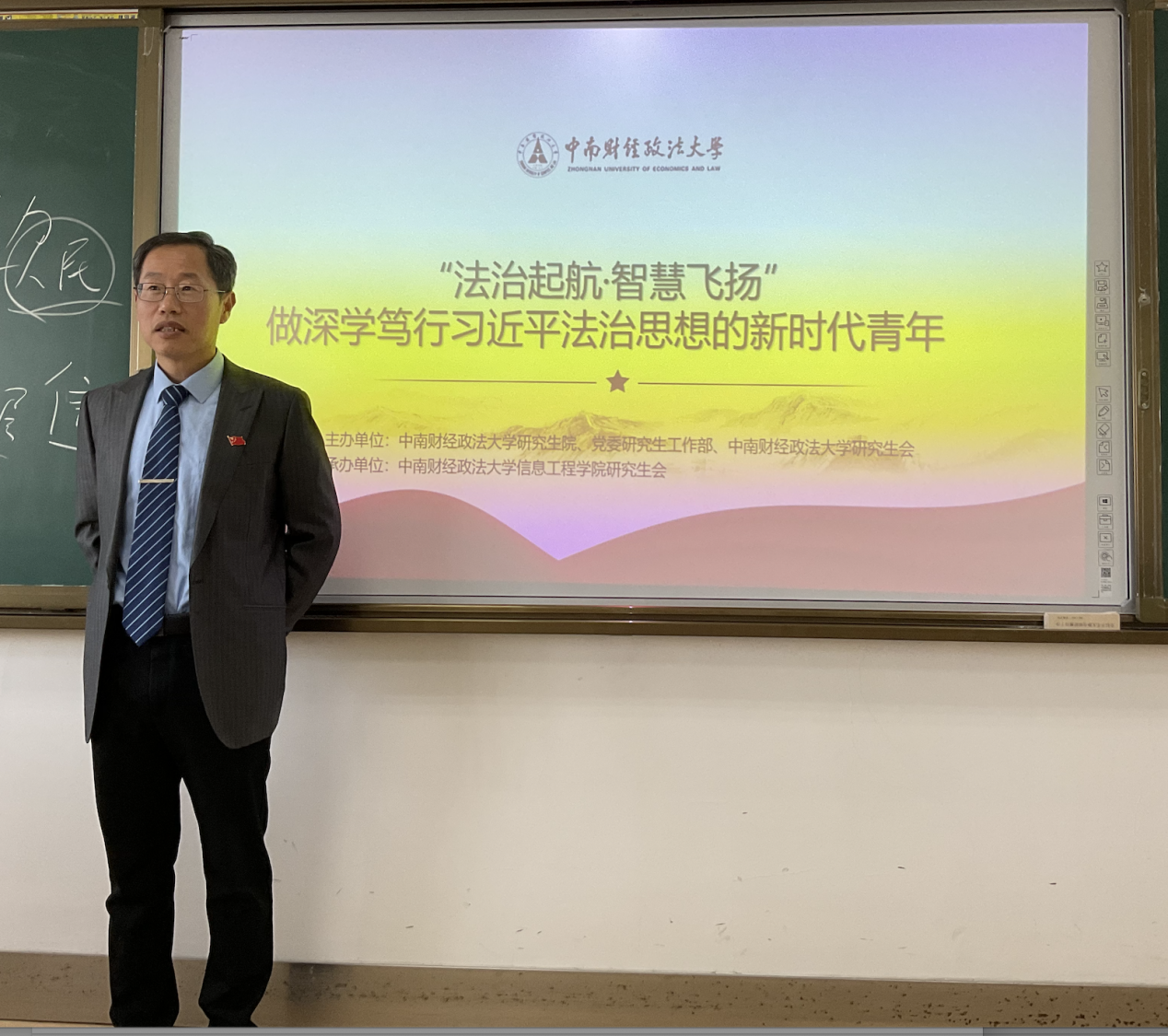 (通讯员:李清钦 张屿竞)为深入贯彻习近平总书记的重要指示精神,坚持“全覆盖、制度化、重实效”,着力推动我院学风建设,不断深化教育效果,为落实人才强国战略做出新的贡献。2024年11月7日星期四下午14点30分,由中南财经政法大学研究生院、党委研究生工作部和中南财经政法大学研究生会主办、信息工程学院研究生会承办的“文澜大讲堂”之名家讲坛活动在文澴楼517教室成功举办。