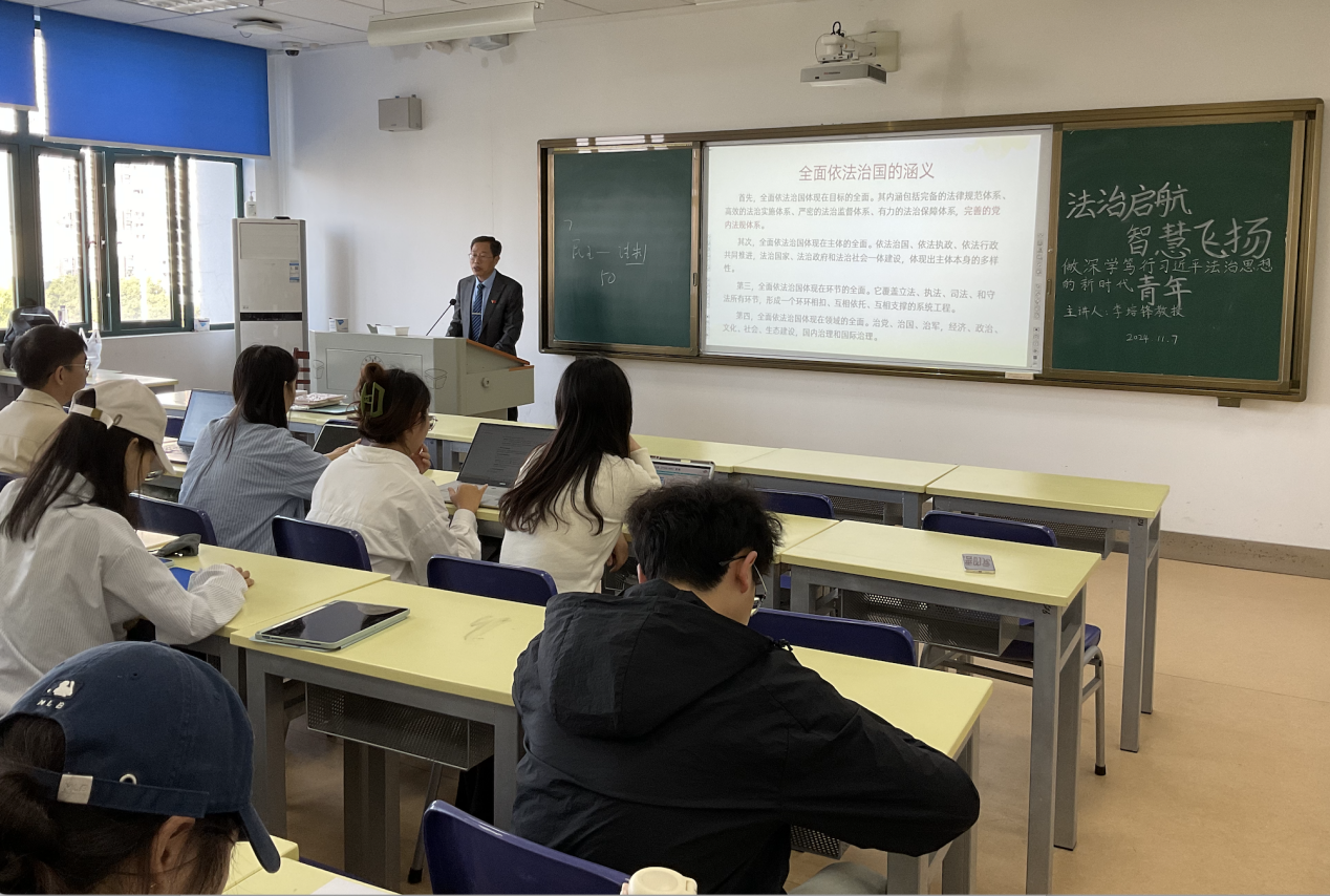 随后,李教授深入阐述了习近平法治思想与全面依法治国战略布局的关系。他通过生动的案例分析,展示了习近平法治思想在指导国家治理体系和治理能力现代化中的重要作用,李教授对全面依法治国的涵义进行了层层深入的剖析,包括目标全面、主题全面、环节全面和领域全面。